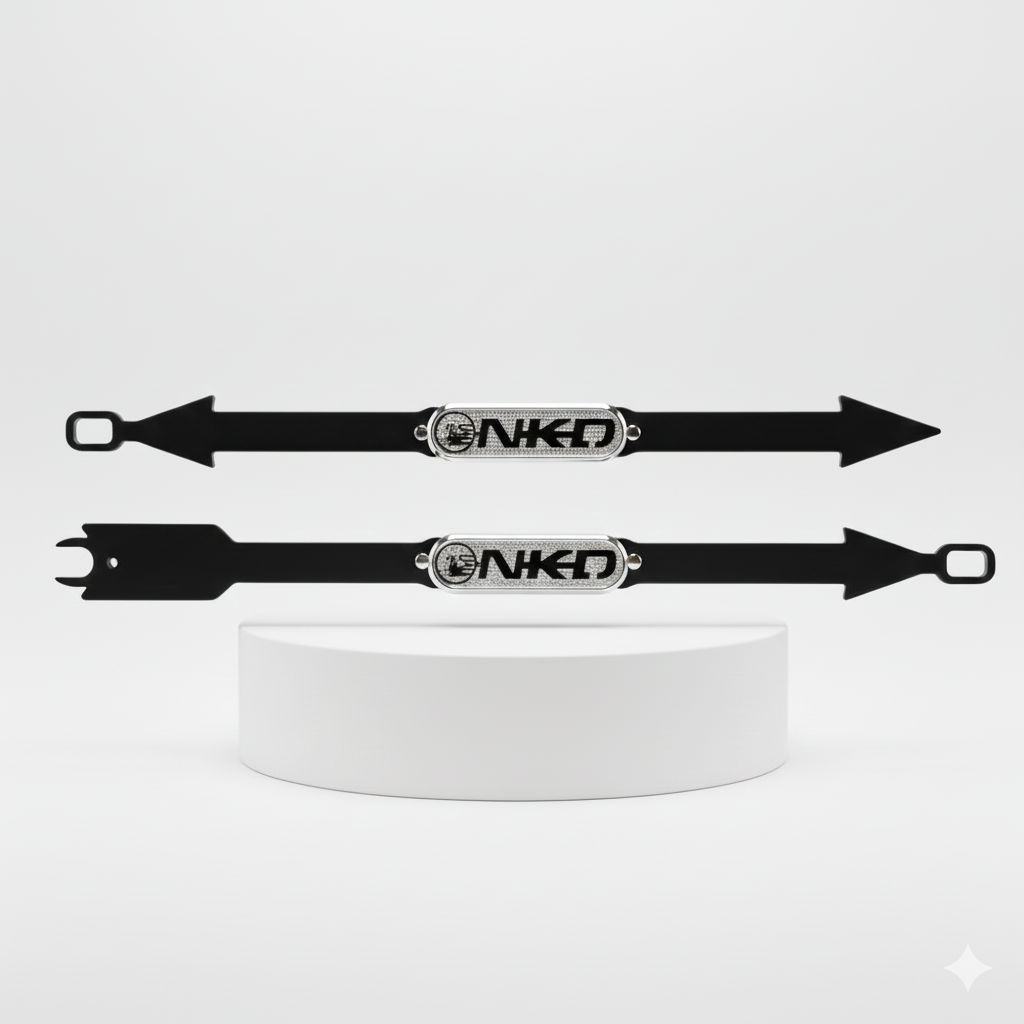 Refuerzo trasero tipo flecha para NKD 125. Menos vibración y más rigidez. Acabado negro 3D, montaje rápido y estética premium para uso diario.