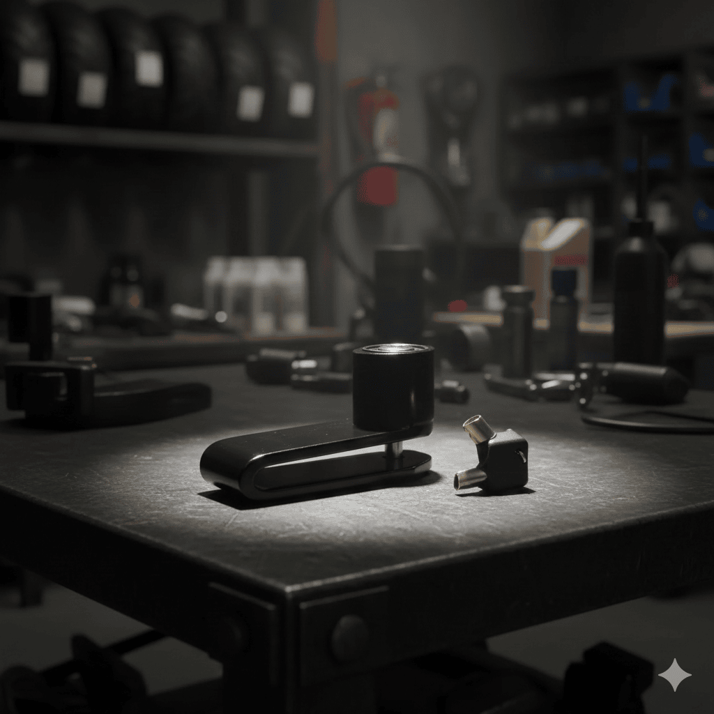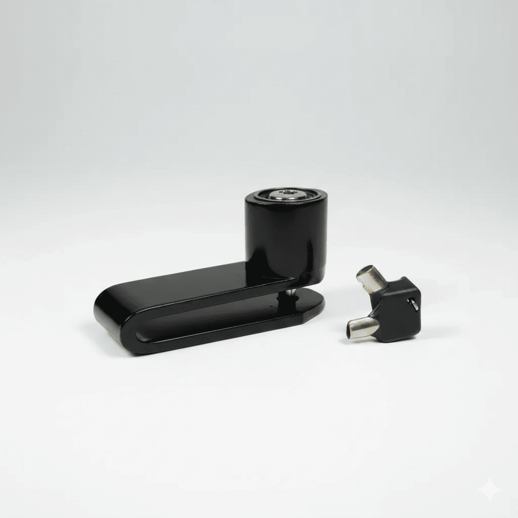 Bloqueo de disco mediano, visible y confiable. Pasador templado, cierre rápido y uso intuitivo. Ideal para motos y bicicletas en paradas frecuentes.