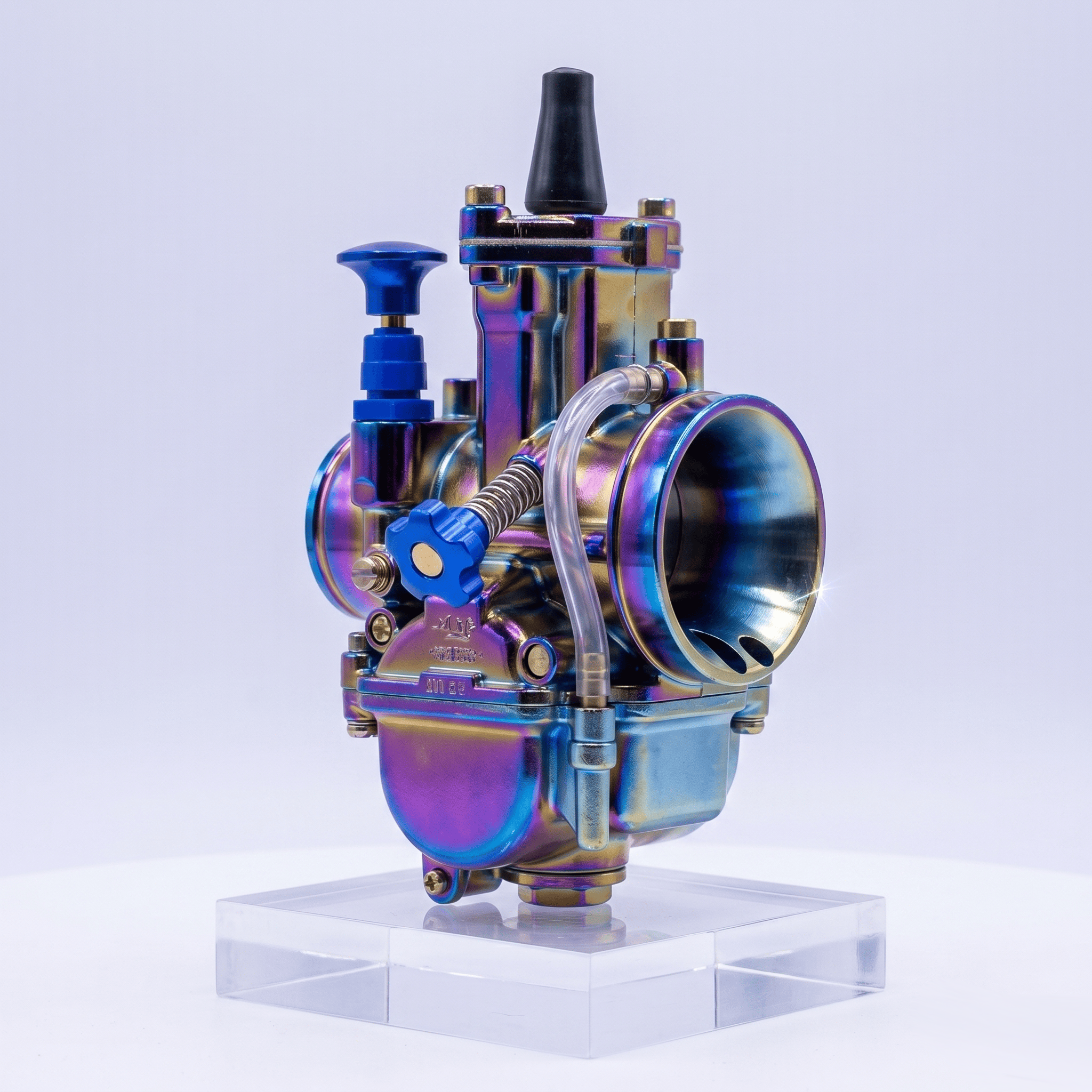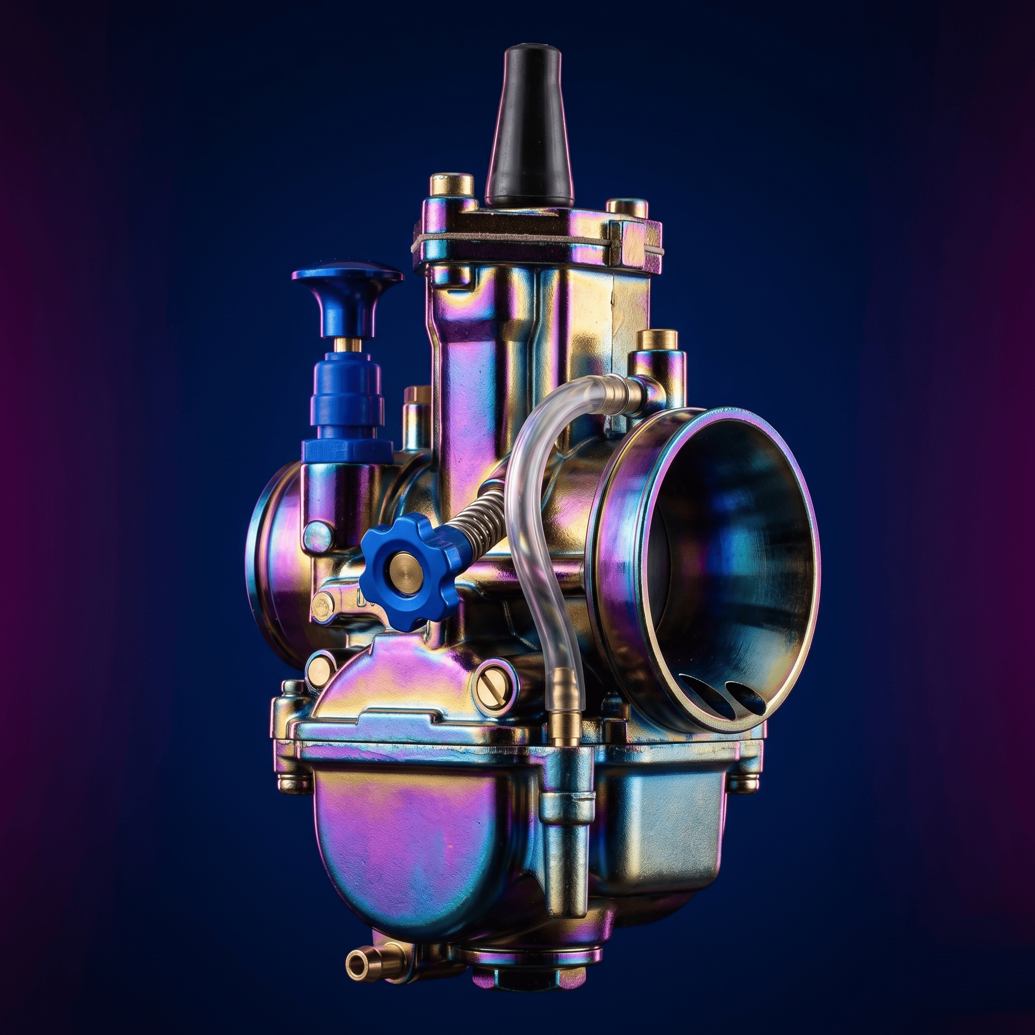 Carburador de cortina plana 32 mm con acabado tornasol tipo Sudco.