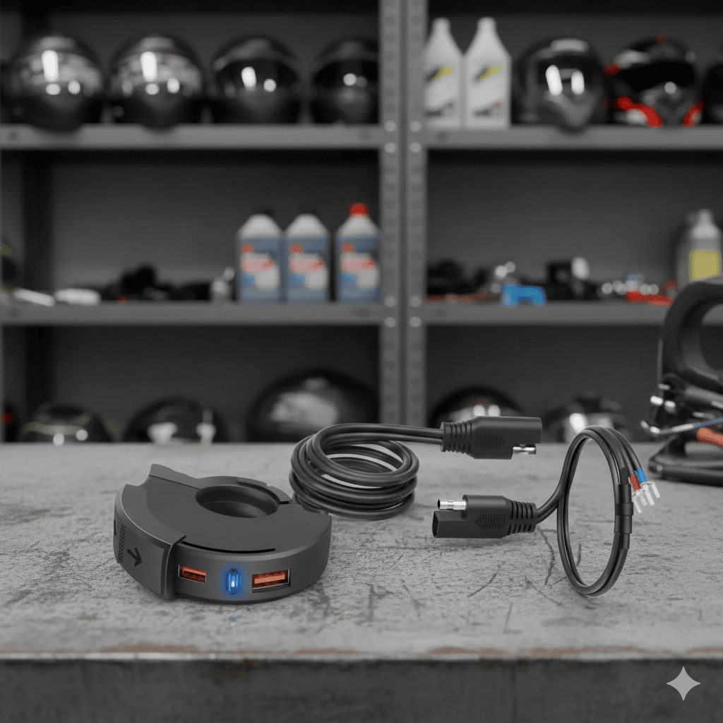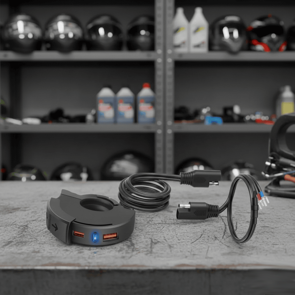 La instalación es sencilla y ordenada. Primero, ubicas un punto cerca del manillar. Luego, conectas positivo y negativo con fusible. Finalmente, aseguras el soporte y verificas carga.