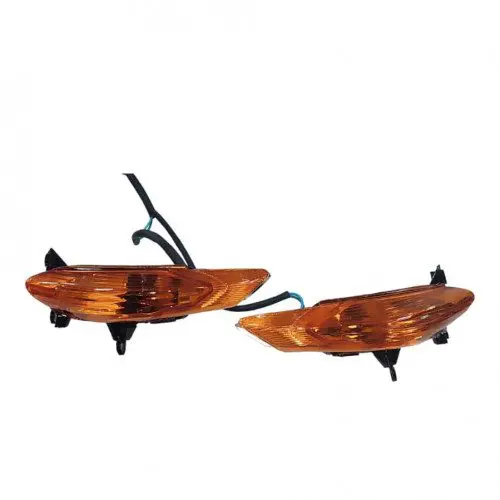 Se trata de un conjunto de direccionales delanteras compatibles con Crypton 115. Incluyen carcasa ámbar y base lista para montaje. También usan conexión estándar de dos cables en la mayoría de versiones. En consecuencia, el reemplazo resulta práctico y limpio. El diseño mantiene la línea original del carenado.