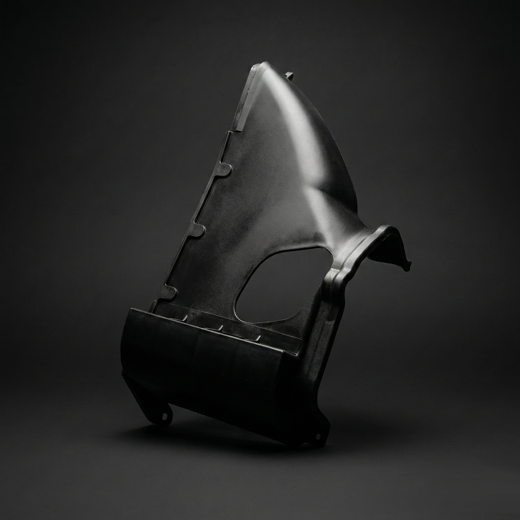 Es una carcasa tipo ducto ubicada en la zona inferior delantera. Luego, canaliza el flujo hacia el ventilador y las aletas.