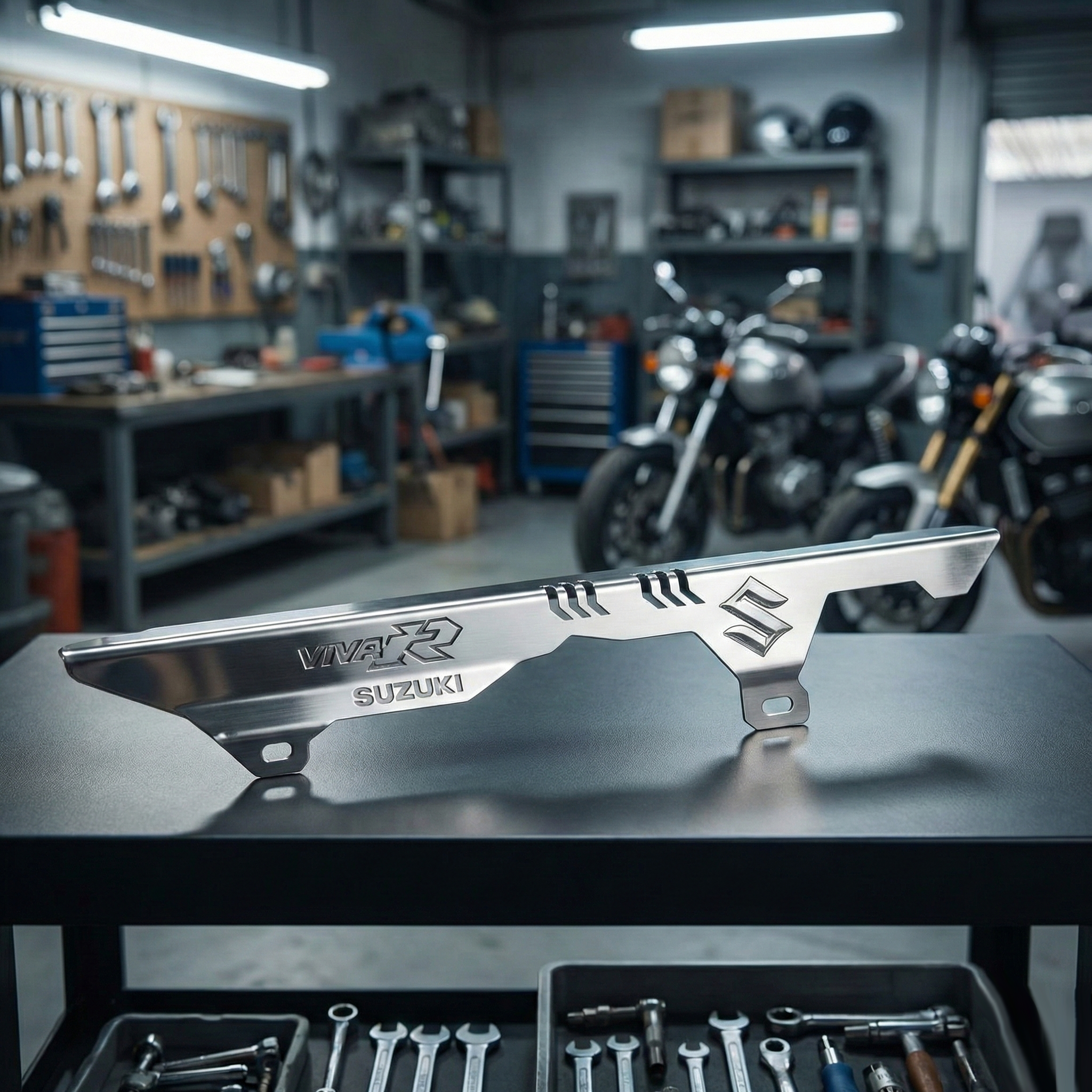 El Guarda Cadena Acero Inoxidable suzuki Viva R es un accesorio perfecto para personalizar tu motocicleta y mejorar su funcionalidad con estilo.