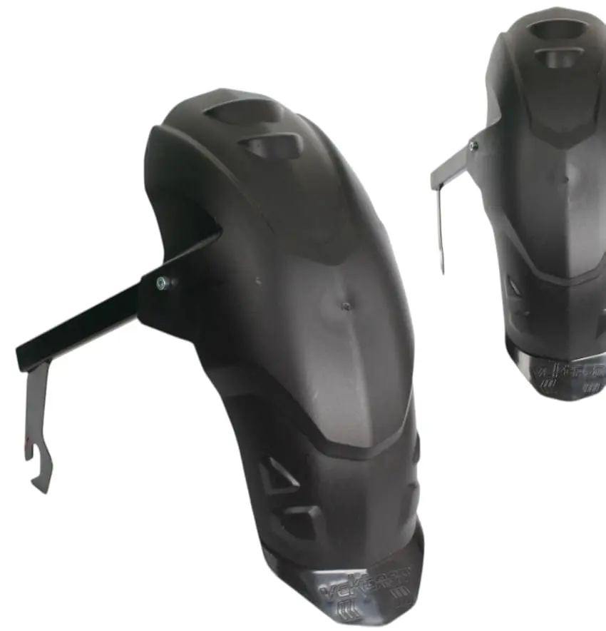 Su perfil cubre la zona expuesta del neumático. Asimismo, desvía agua y piedras pequeñas. En consecuencia, el impacto en el amortiguador disminuye. Incluso, la cadena recibe menos suciedad diaria. Por lo tanto, el mantenimiento se simplifica bastante.