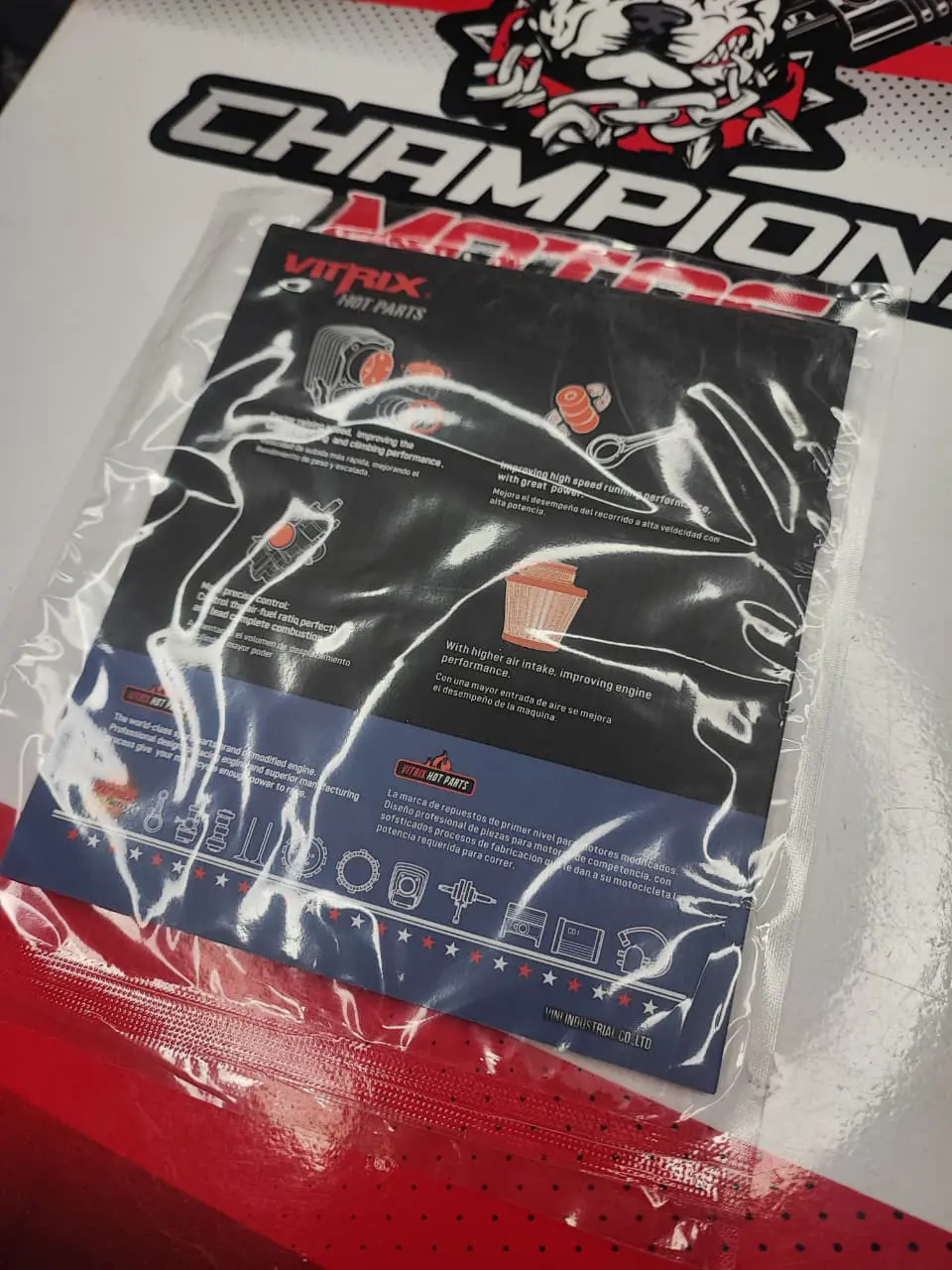 Este producto de la marca Vitrix está fabricado con materiales resistentes a altas temperaturas y presiones. Por lo tanto, asegura una larga vida útil incluso en recorridos exigentes. Asimismo, está diseñado específicamente para la motocicleta AKT NKD 125 modificada a 160CC, lo que garantiza compatibilidad y un ajuste perfecto. En consecuencia, reduce mantenimientos innecesarios y protege el motor en todo momento.