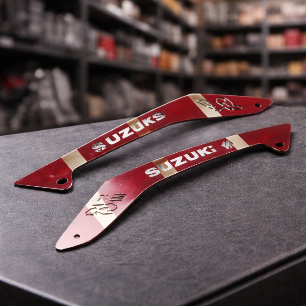 El diseño está orientado a Suzuki Viva R. Asimismo, respeta líneas del carenado frontal. Por lo tanto, se integra sin interferir con plásticos. En consecuencia, el conjunto conserva holguras y recorridos. También permite desmontaje rápido para limpieza general.