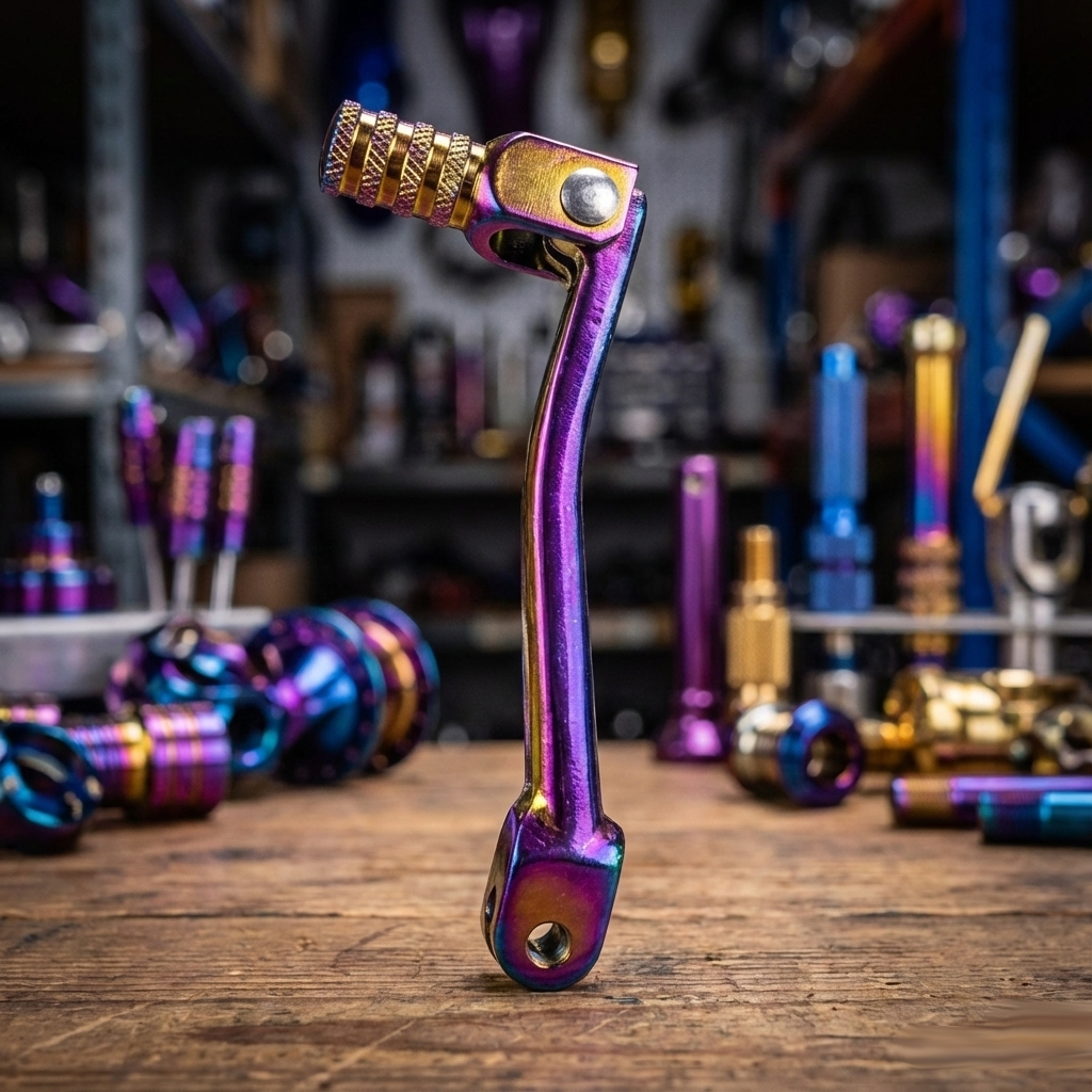 Es una palanca de cambio universal para moto. Además, incorpora acabado iridiscente premium. Palanca De Cambios Universal Tornasol De Lujo Para Moto sustituye piezas gastadas. Por lo tanto, recupera precisión y estilo en tu transmisión.