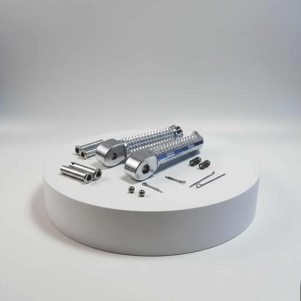 Es un juego de reposapiés traseros completos. Además, incluye soportes según la versión. Así, reemplazas piezas gastadas con ajuste original.