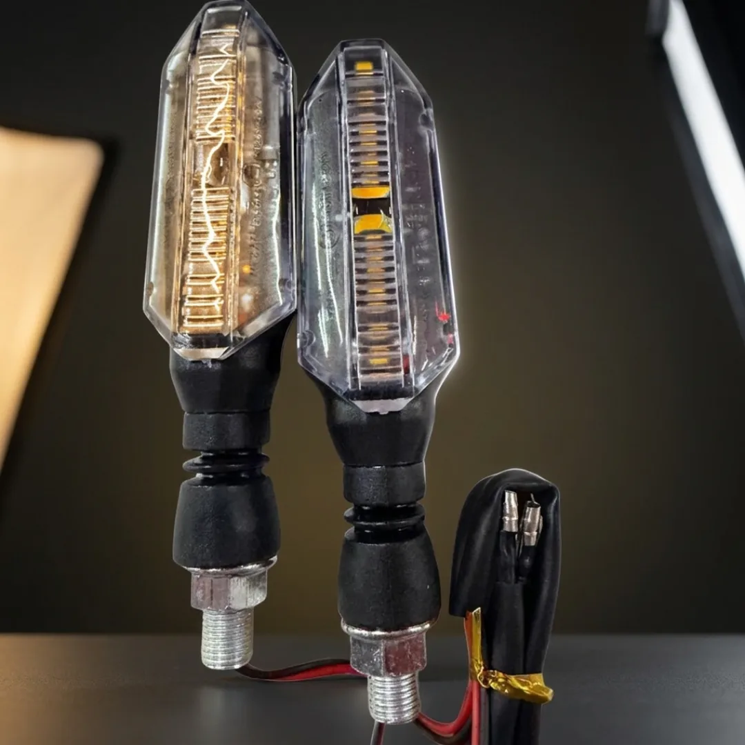 Estas direccionales destacan por su tono amarillo. Asimismo, ese color aporta una lectura visual más clara en el conjunto de la motocicleta. Por otra parte, su enfoque universal amplía las posibilidades de instalación. De este modo, el producto se vuelve atractivo para múltiples motos. Incluso, funciona bien para clientes que desean una renovación visible y práctica.