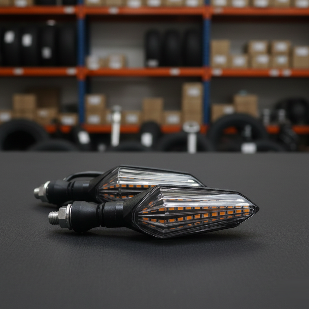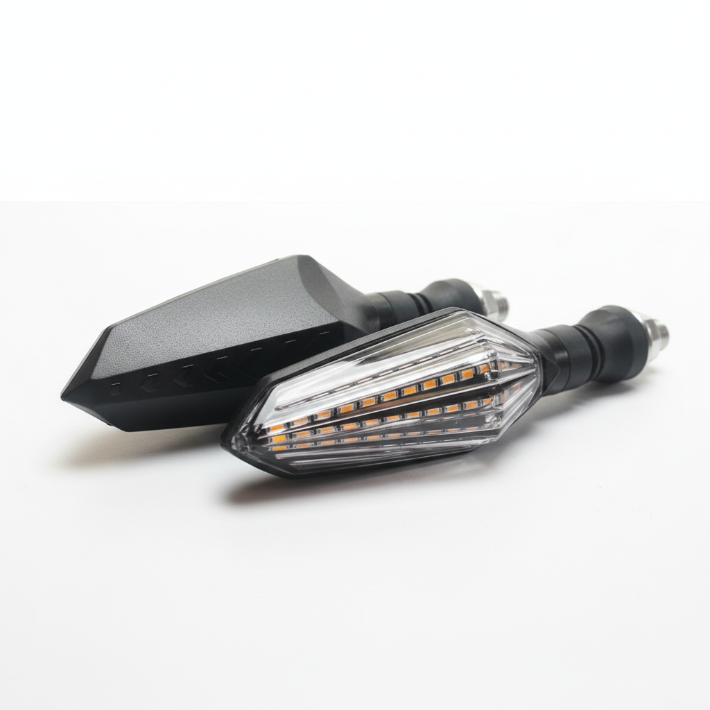 El diseño orienta la luz hacia atrás. Además, el patrón de flecha dirige la atención. En consecuencia, la intención de giro resulta evidente. Igualmente, el cableado sigue rutas protegidas. Por eso, el conjunto soporta uso diario intenso.