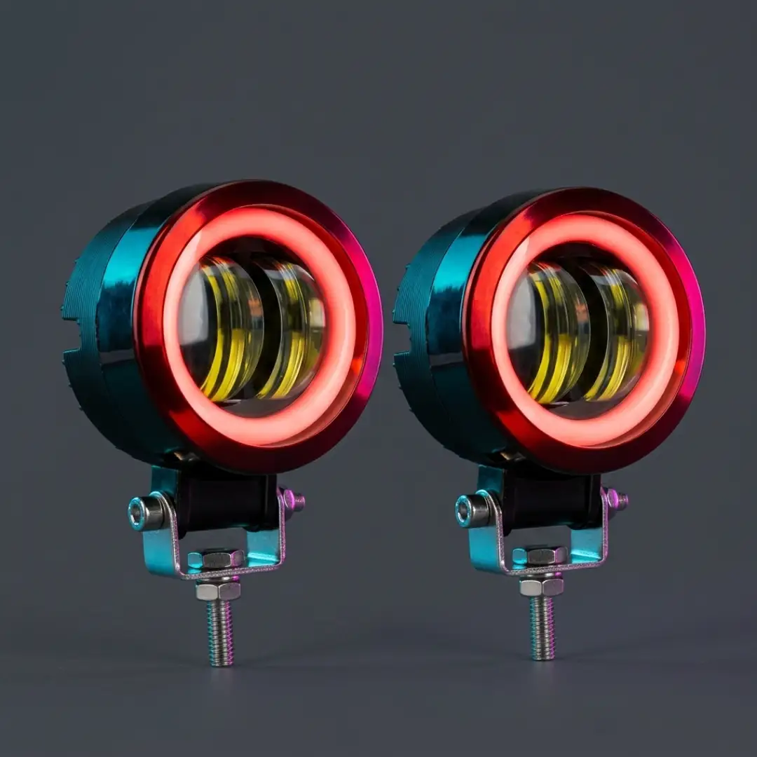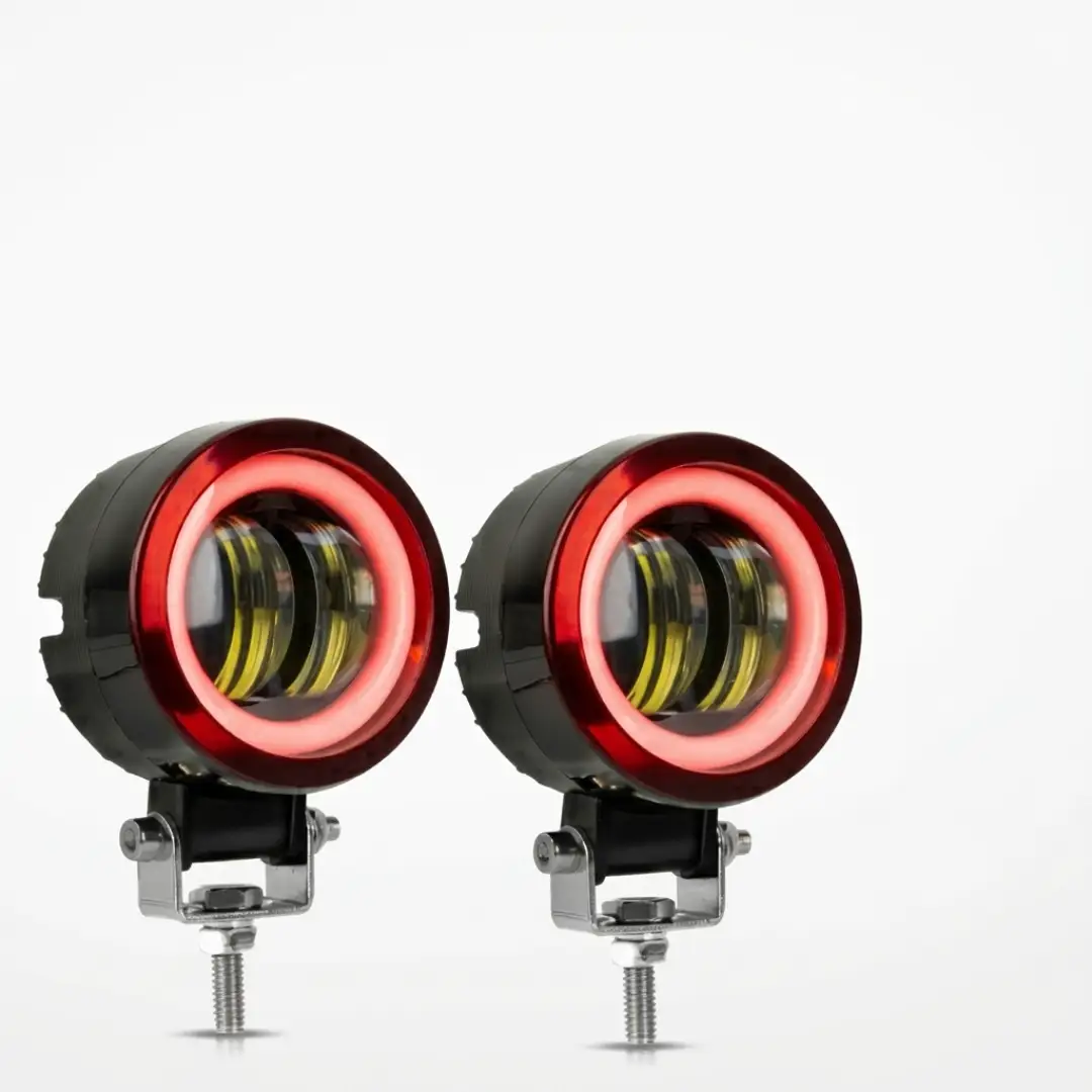 El Par Exploradoras Redondas Ojo De Ángel Rojo Para Moto es un accesorio ideal para quienes buscan mejorar la presencia visual de su moto y reforzar el estilo del frente. Su diseño redondo combina muy bien con motos urbanas y deportivas. Además, el aro tipo ojo de ángel rojo crea un detalle llamativo. Por eso, es una excelente opción para personalización y para complementar el sistema de luces auxiliares.