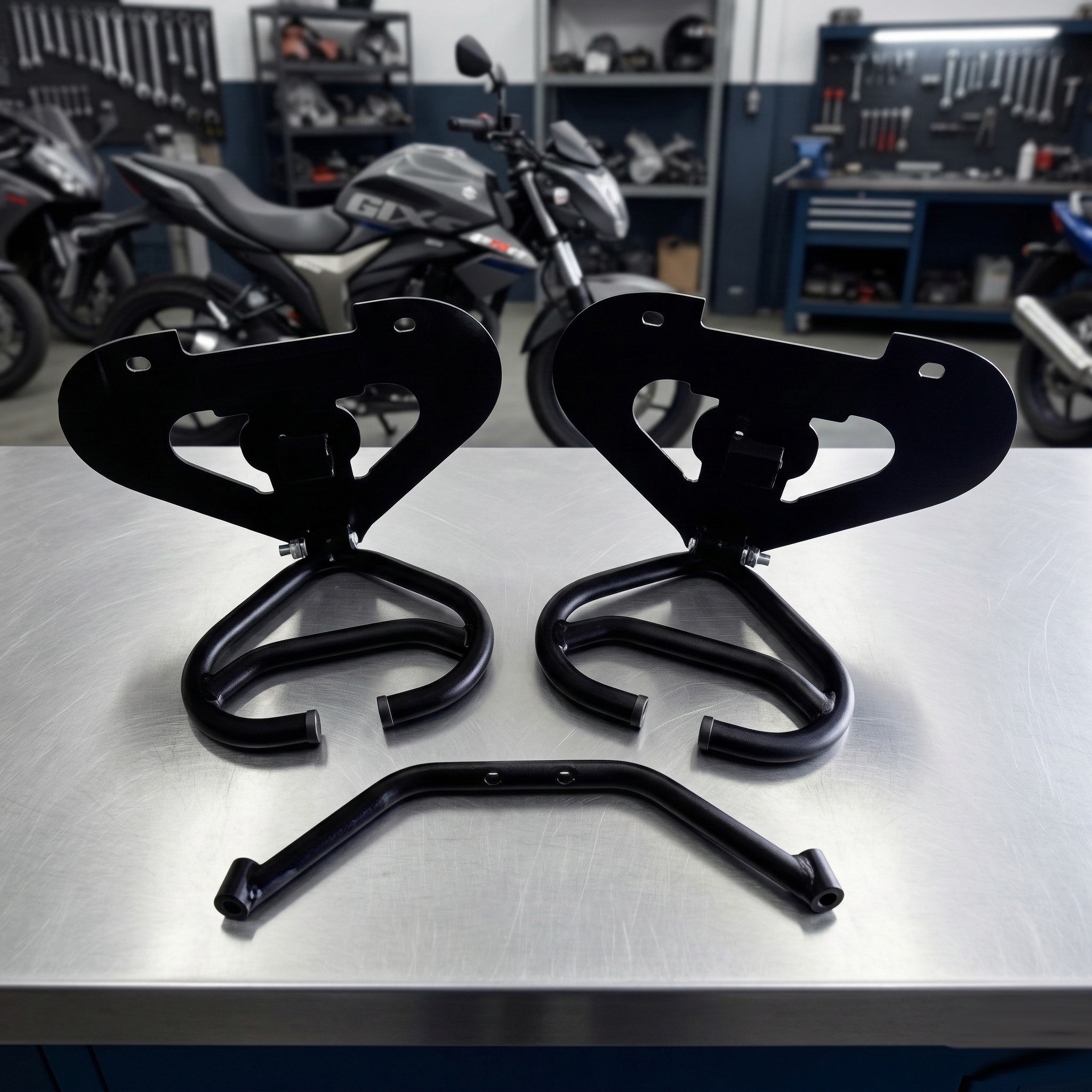 Porta Alforjas Negro Suzuki Gixxer 150 Acero Reforzado es un herraje lateral pensado para viajar con más tranquilidad.