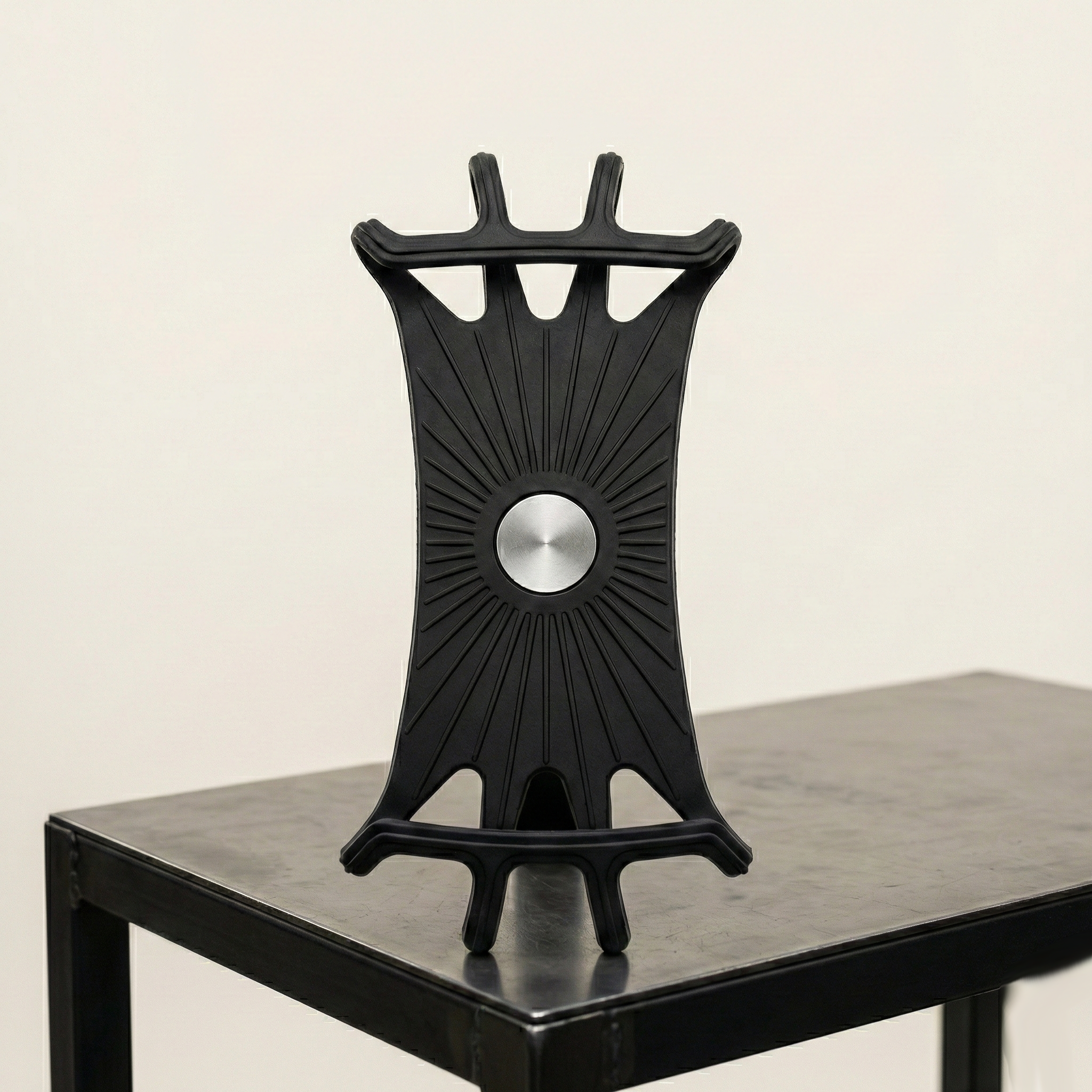 Para el montaje, coloca la abrazadera en el tubo. Luego centra la base y aprieta el tornillo gradualmente. Así, la rótula quedará sólida y alineada. Finalmente, estira la malla de silicona sobre las esquinas. Con ello, el equipo quedará fijo y bien amortiguado.