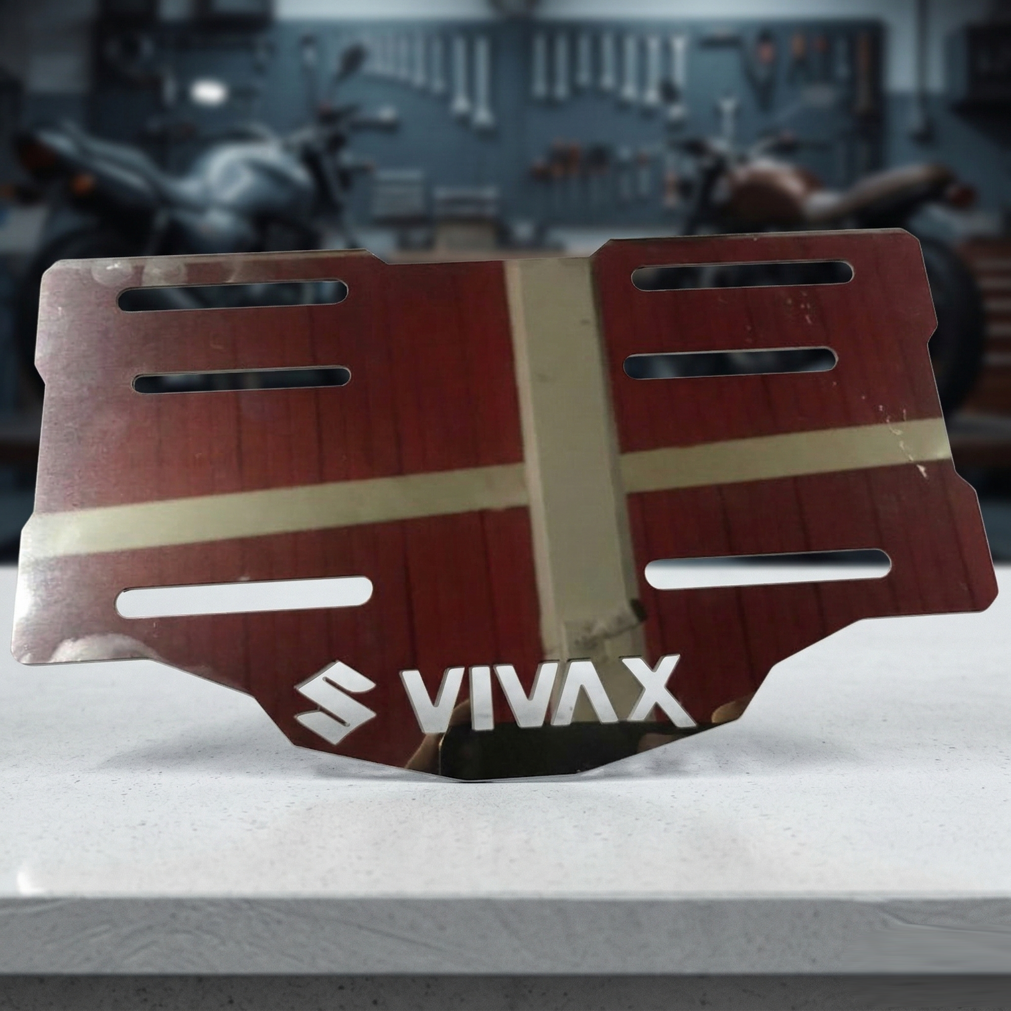 El Porta Placa Suzuki Vivax 115 Acero Inoxidable es un accesorio perfecto para personalizar tu motocicleta y mejorar su funcionalidad con estilo.