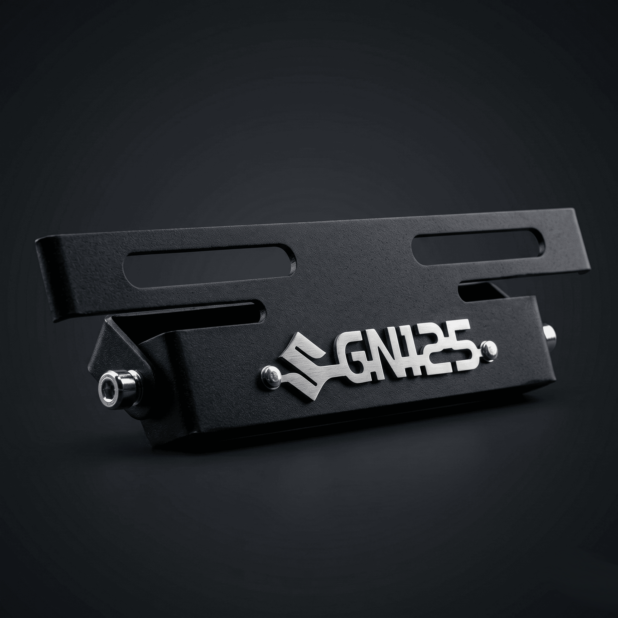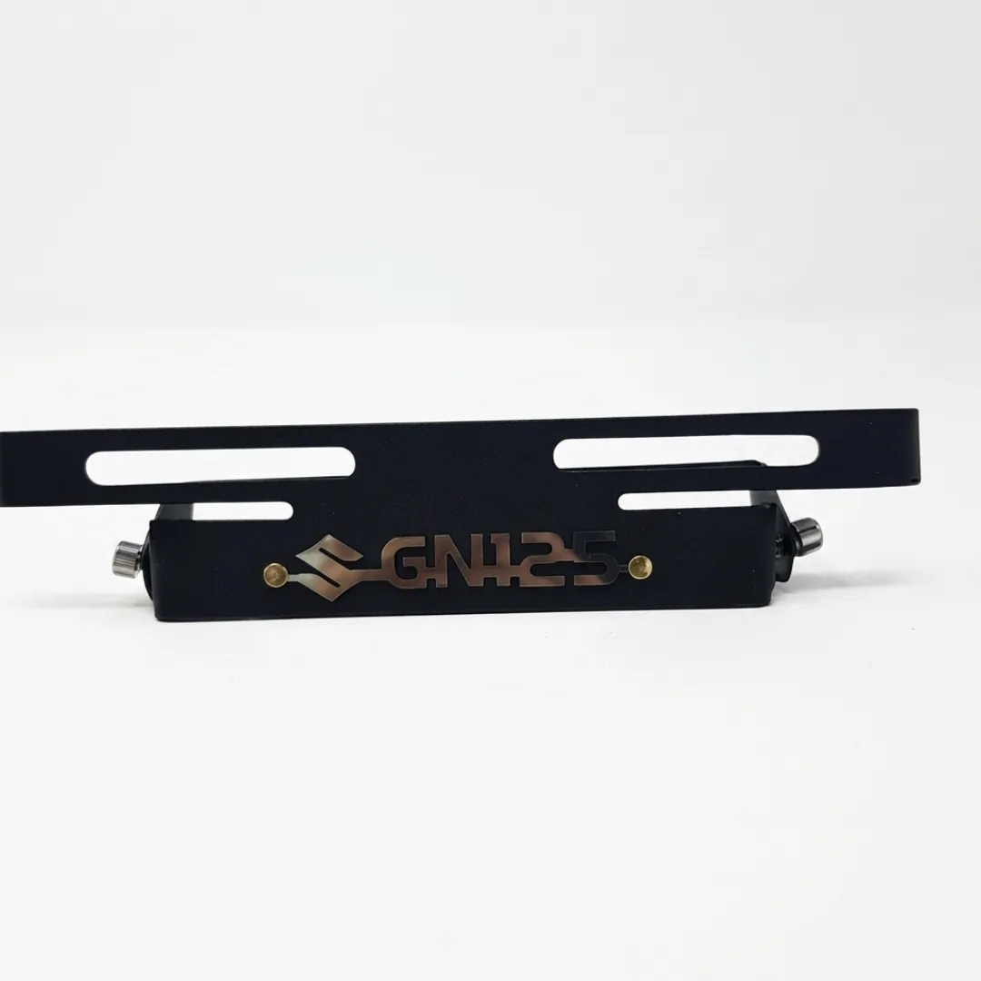 Dale a tu GN125 un look más deportivo con este portaplaca retráctil negro 3D en acero inoxidable, ideal para una imagen trasera más limpia.