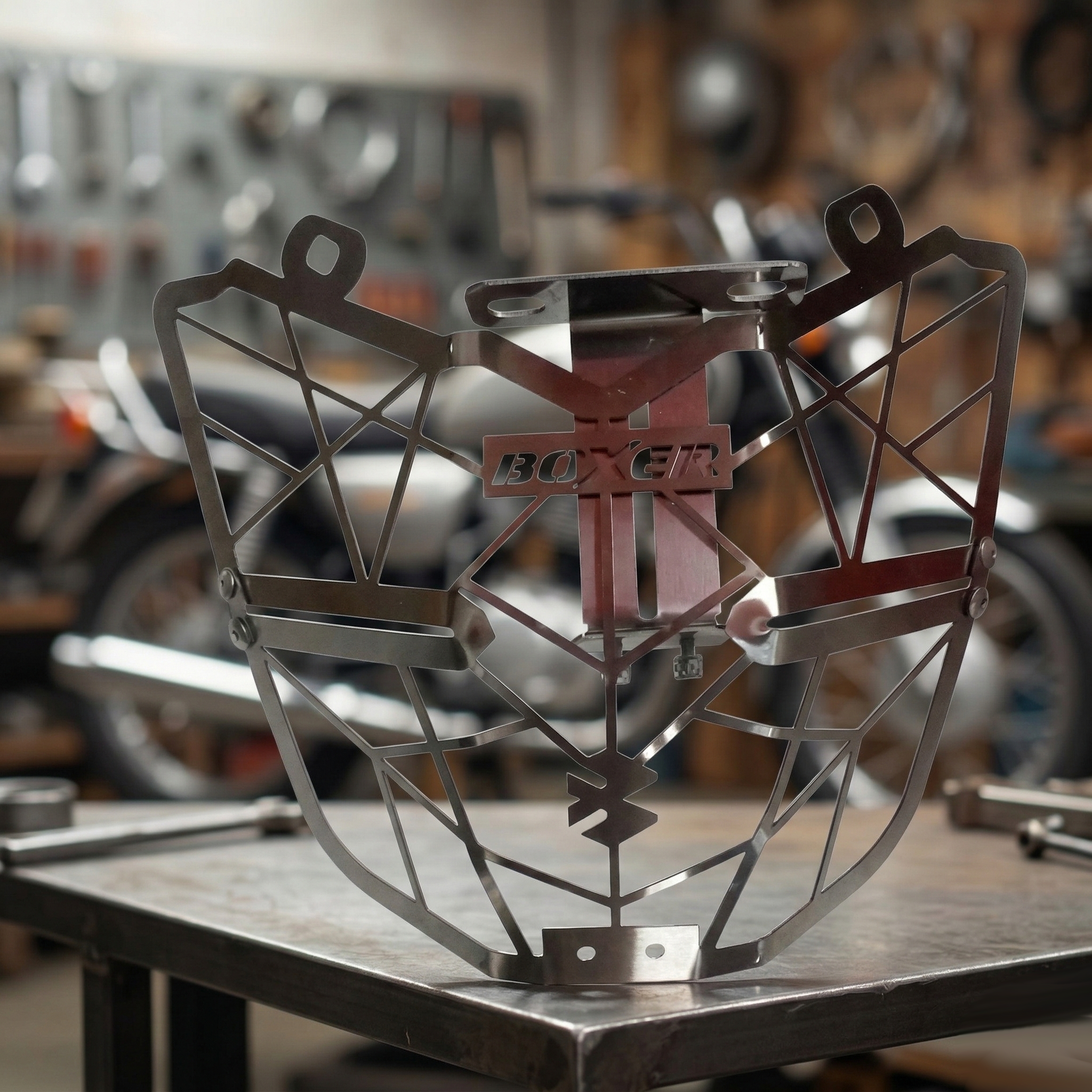 Está fabricado en acero inoxidable con acabado cromado. Por lo tanto, ofrece buena resistencia para el uso diario. Además, su diseño está orientado a la Boxer CT 100. Así, mantiene una línea visual acorde con el frente de la moto. Su estructura realza la apariencia del faro. De igual manera, aporta un detalle distintivo y moderno. En varios catálogos se ofrece como protector de farola o rejilla frontal. Por ende, es un accesorio funcional y decorativo.
