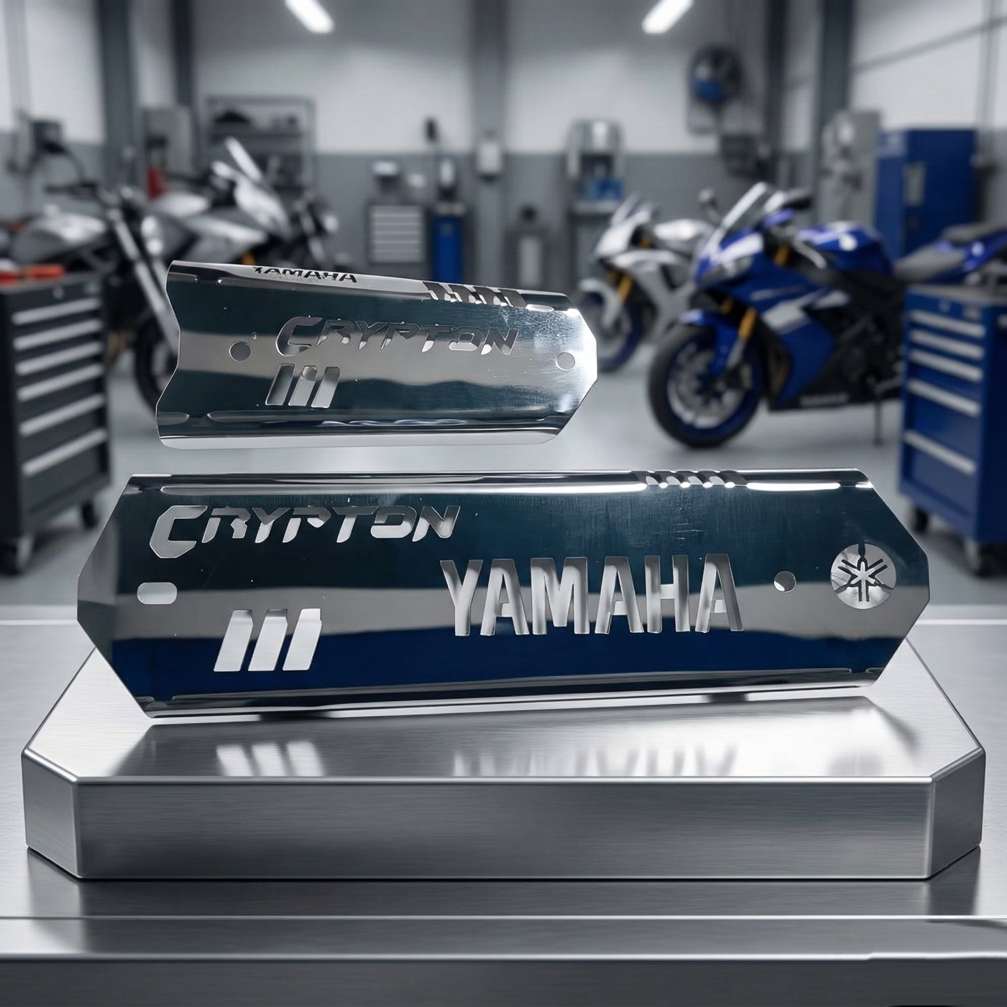Luego, el Protector Exosto Yamaha Crypton Acero Inoxidable M2 aporta un look más deportivo.