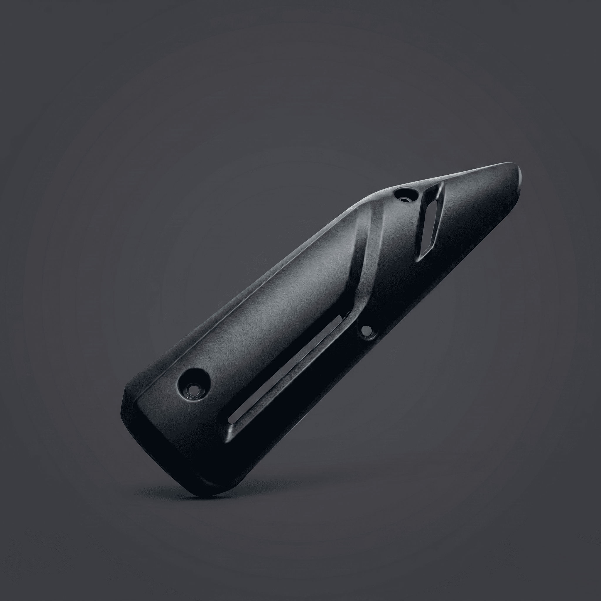 Este producto corresponde al protector externo del mofle o escape. Es decir, es la pieza visible que cubre y complementa la zona del sistema de salida. De este modo, mejora la presentación del conjunto lateral. Asimismo, ayuda a conservar una apariencia más ordenada en la moto. Por lo tanto, es un accesorio importante en la estética del escape.