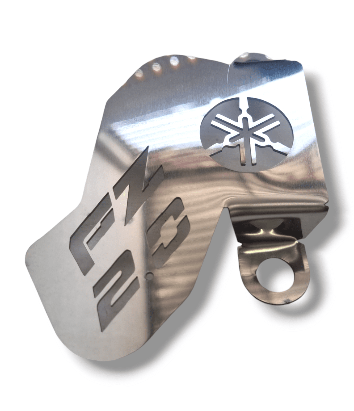Cobertor en acero inoxidable para la pinza delantera. Menos roces y salpicaduras. Corte láser, peso ligero y montaje directo para FZ 2.0.