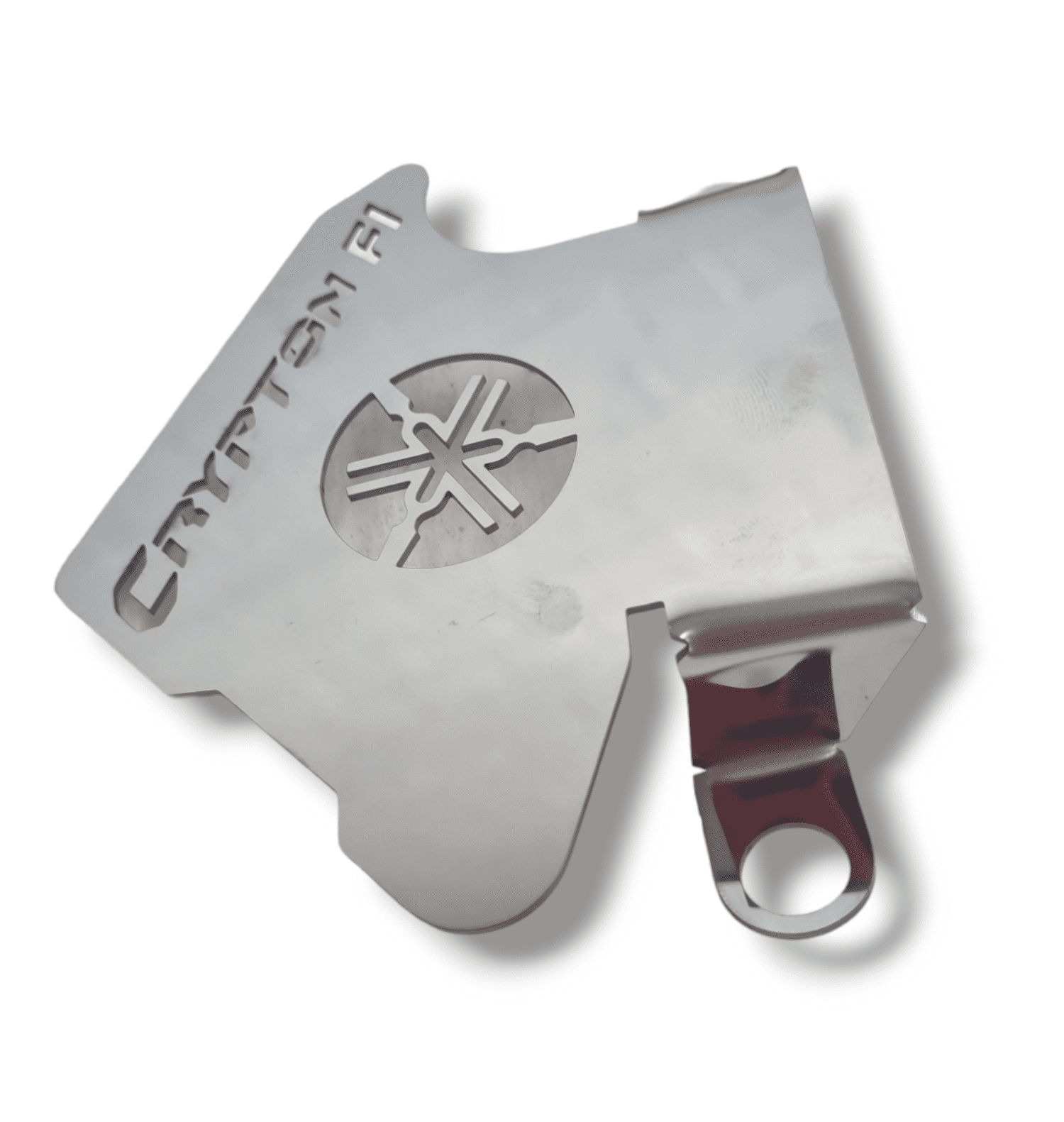 El Protector Mordaza Yamaha Crypton 2 115 Acero resguarda el cáliper delantero eficazmente. Además, aporta un estilo sobrio y moderno. Así, la rueda delantera luce limpia y uniforme.