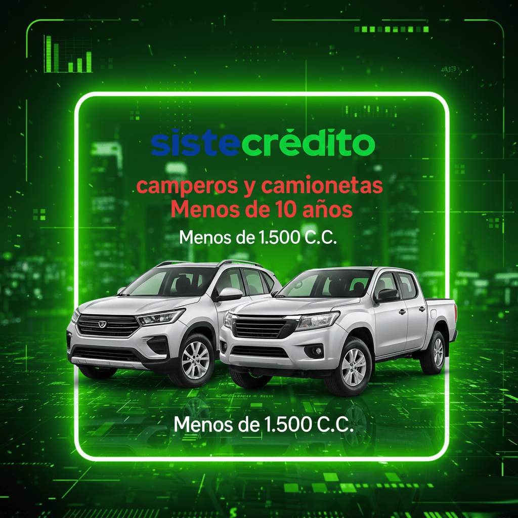 El Soat Camperos y Camionetas Menos de 10 Años Menos de 1.500 C.C Con Sistecredito agiliza tu renovación anual. Además, permite pagar en cuotas tras evaluación ágil. Así, mantienes tu vehículo al día sin filas ni papeleo.