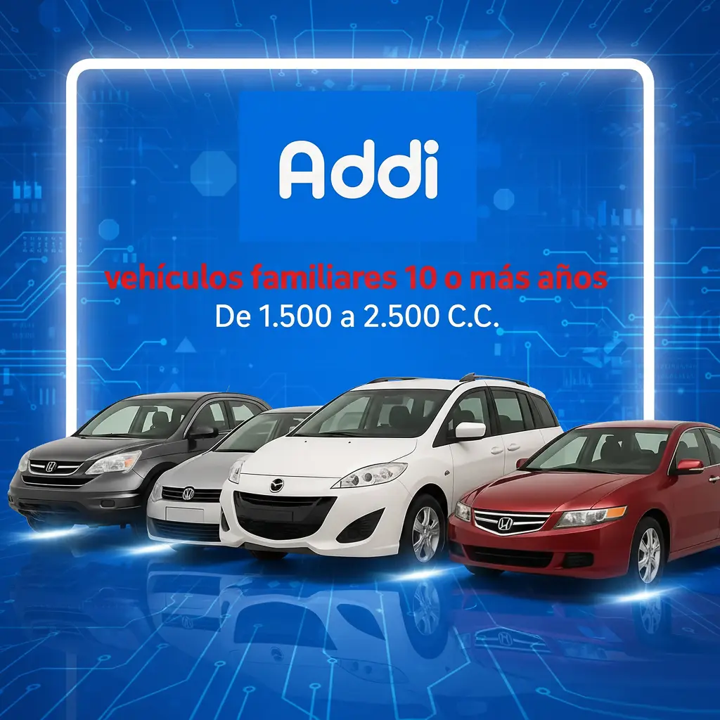 Con Soat Vehículos Familiares 10 o Más Años De 1.500 a 2.500 C.C Con Addi financias tu póliza en cuotas fijas. Además, el proceso es 100% digital y guiado. Así, aseguras tu carro familiar sin filas ni papeles.