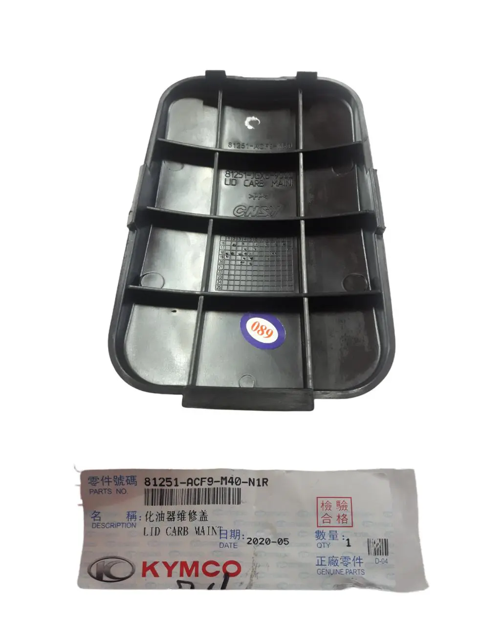 Es la tapa OEM del baúl del Kymco Twist 125. Cubre y sella el compartimento bajo el asiento. Asimismo, protege objetos frente a polvo y salpicaduras.